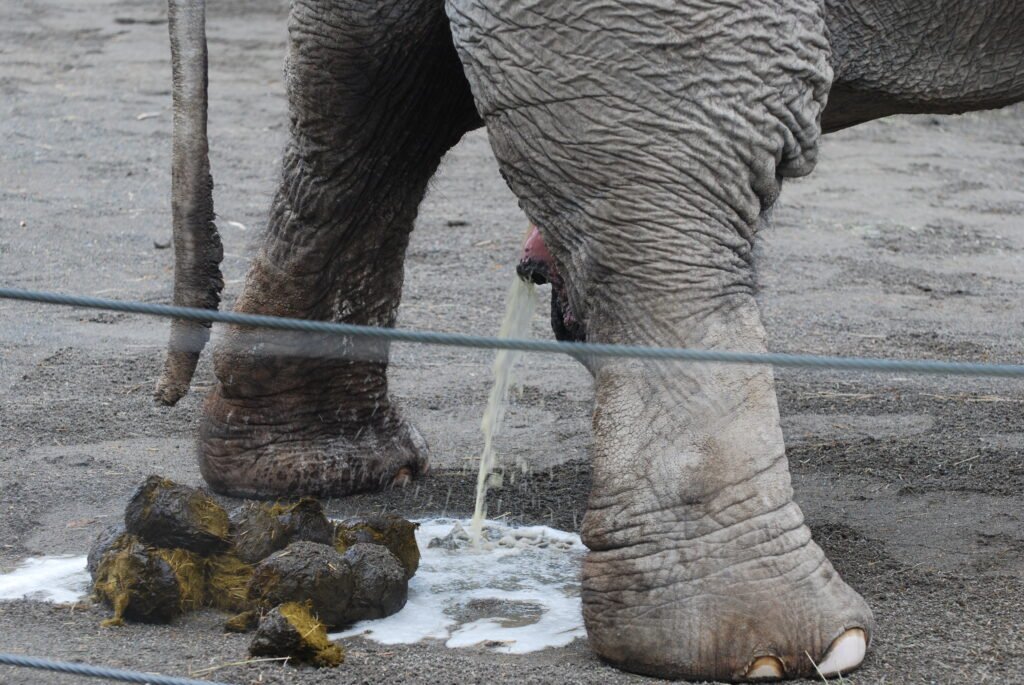 Temporin discharge is noted in both males and females of all ages, but is less noticeable in immature elephants. The consistency and constitution of temporin differs between male and females, presumably contributing to the fact that only males go through musth, and only then when they get older.